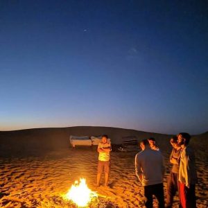 The self-cooking event in the open fire is the most amazing part where this group activity calls for effort and ideas of everyone for making a simple yet delicious food. The fun of cooking food in the most extraordinary location in the dunes is an exceptional experience. Enjoy the delicious dinner with songs & chit-chats with the folks in the camp.